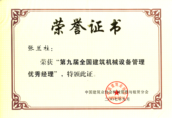 張?zhí)m柱同志以他杰出的工作業(yè)績被各級領(lǐng)導機關(guān)授予:全國、河北省、保定市建筑業(yè)優(yōu)秀企業(yè)經(jīng)理;優(yōu)秀企業(yè)家;優(yōu)秀共產(chǎn)黨員;優(yōu)秀黨務工作者;優(yōu)秀思想政治工作者;安全生產(chǎn)、工程質(zhì)量管理先進個人;河北省優(yōu)秀經(jīng)理管理者;河北省建設系統(tǒng)勞動模范;河北省勞動模范等榮譽稱號