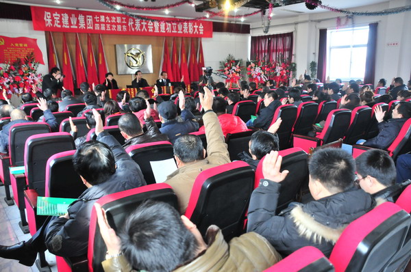 大會(huì)在莊嚴(yán)的國(guó)歌聲中拉開了序幕,首先由集團(tuán)公司副總經(jīng)理邸京朝做《二零一一年度工作總結(jié)(草案)》,總會(huì)計(jì)師于廣志做《二零一一年度財(cái)務(wù)工作報(bào)告》,監(jiān)事會(huì)主席閆雙彥做《二零一一年度財(cái)務(wù)審核報(bào)告》,總經(jīng)濟(jì)師李莉做《二零一一年工作安排意見的報(bào)告(草案)》,工會(huì)主席黃春玲做《二零一一年度職代會(huì)工作總結(jié)及二零一二年度工作安排報(bào)告(草案)》。隨后全體與會(huì)代表對(duì)上述報(bào)告進(jìn)行舉手表決,均全票通過。隨后由集團(tuán)下屬分公司經(jīng)理代表與集團(tuán)公司簽訂了2012年經(jīng)濟(jì)生產(chǎn)責(zé)任狀。會(huì)后,集團(tuán)公司董事長(zhǎng)兼黨委書記張?zhí)m柱同志做重要講話,總結(jié)了集團(tuán)公司在二零一一年工作中的經(jīng)驗(yàn)與不足,激勵(lì)廣大職工、股東代表在新的一年里為企業(yè)的快速發(fā)展繼續(xù)作好排頭兵、發(fā)揮表率作用,與廣大員工一起為集團(tuán)公司貢獻(xiàn)力量。