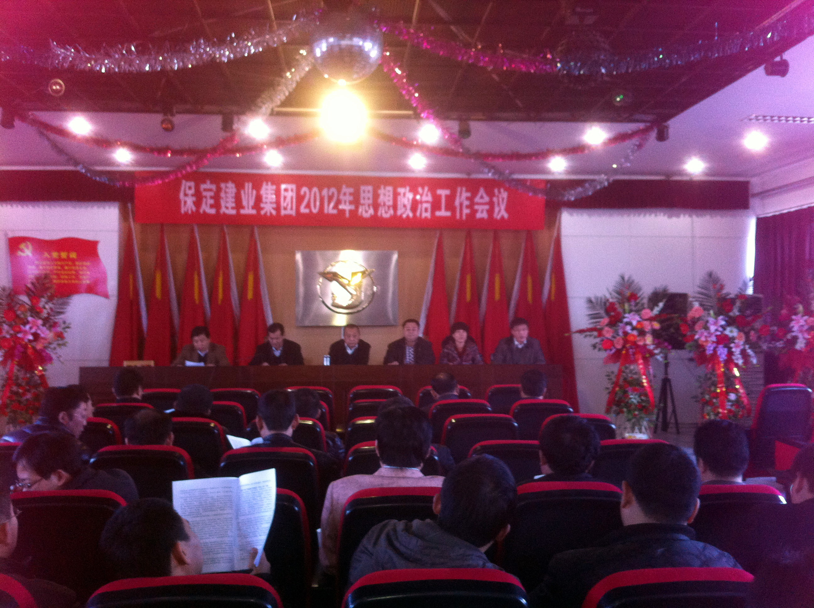 2012年3月14日,保定建業(yè)集團有限公司2012年思想政治工作會議在莊嚴(yán)的國歌聲中拉開了序幕,會議由黨委辦公室主任馬亞軍主持,集團各公司黨、政、工、團、婦、武裝、保衛(wèi)負(fù)責(zé)人參加會議。